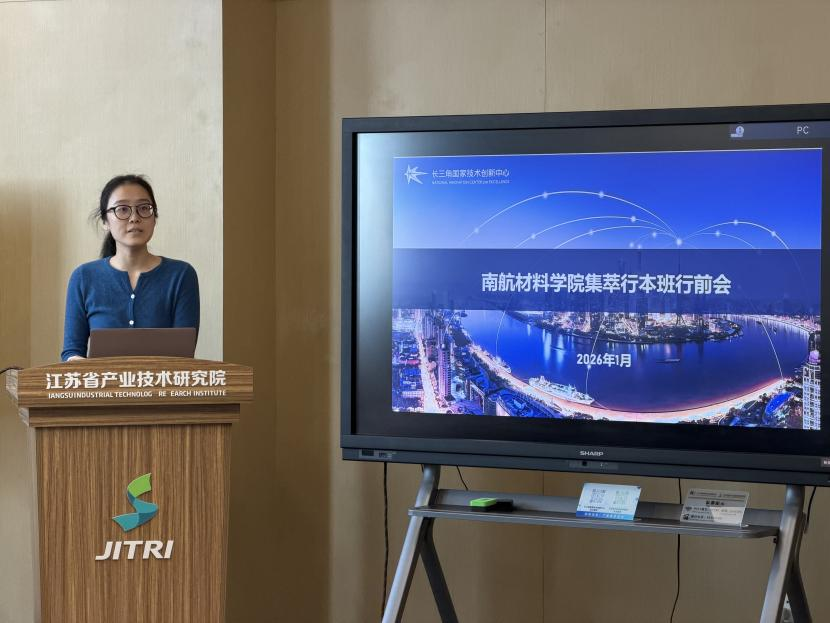 随后,举行了集萃行本创新班开班仪式,仪式由樊陆欢主任主持。她首先对蜜桃传媒 一行及集萃行本创新班全体同学的到来表示热烈欢迎,并简要介绍了江苏省产业技术研究院在工程教育与产教融合方面的整体布局。她表示,集萃行本创新班是双方深化协同育人、推动教育链与产业链深度融合的重要探索,希望同学们珍惜难得的实践机会,在真实产业环境中锻炼工程能力、提升综合素养。